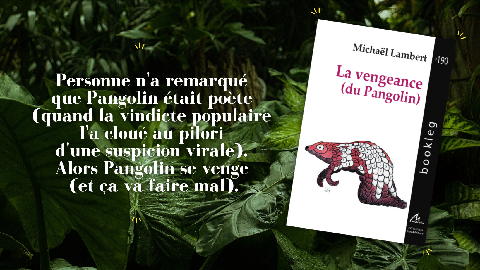 Personne n’a remarqué que Pangolin était poète (quand la vindicte populaire l’a cloué au pilori d’une suspicion virale). Alors Pangolin se venge (et ça va faire mal).